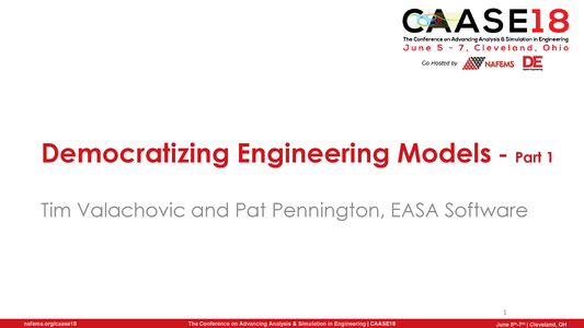 This presentation was made at CAASE18, The Conference on Advancing Analysis & Simulation in Engineering. CAASE18 brought together the leading visionaries, developers, and practitioners of CAE-related technologies in an open forum, to share experiences, discuss relevant trends, discover common themes, and explore future issues.
