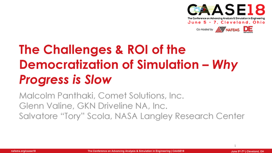 This presentation was made at CAASE18, The Conference on Advancing Analysis & Simulation in Engineering. CAASE18 brought together the leading visionaries, developers, and practitioners of CAE-related technologies in an open forum, to share experiences, discuss relevant trends, discover common themes, and explore future issues.