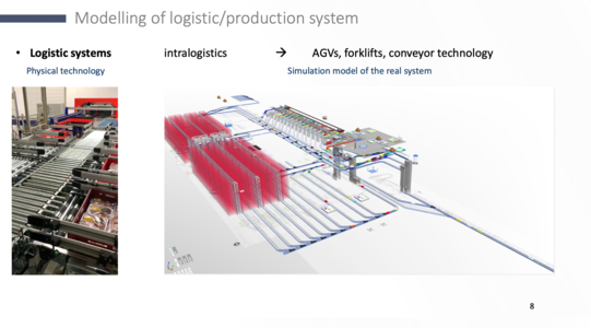 Building of a new or reconstruction of an existing logistic system such as warehouse, cross-dock centre etc. comes together with significant investment costs into a system, which so far exists only as a blueprint. Though, given both the high costs into hardware (conveyor technology, robots, means of manipulation…) as well as software (PLC, WMS or other), not only the investor but also the provider of the technology needs to be sure the system is going to work as planned and be able to achieve target KPIs under every considered operational scenario. This article presents practical examples how to use discrete event simulation to create a model or even a digital twin of an industrial process that makes it possible to run experiments to evaluate the system behaviour under predefined conditions, event taking random and heuristic events into account.