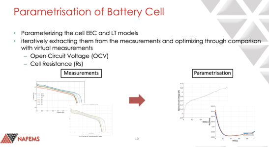 Air transport is one of the fastest-growing sources of greenhouse gas emissions, therefore hybrid electric propulsion is likely to play a more prominent role for regional aircraft with 40+ passengers to reduce its climate impact. The present study focuses on modelling the operating behaviour of the battery system for a future hybrid-electric regional aircraft using an advanced, high energy-dense lithium battery electrochemistry based on available measurement data. The battery operating behaviour is modelled with coupled equivalent electric circuit (EEC) and lumped thermal (LT) models. These empirical models are suited for cell-to-system modelling as they achieve good accuracy while keeping simulation time low. This paper aims at presenting a practical solution to modelling, parametrisation and simulation of the large propulsive battery for a hybrid-electric aircraft based using upcoming energy dense Li-metal battery electrochemistry. The coupled EEC- LT battery models were implemented in Dymola/Modelica using components from the AIT ElectricEnergyStorages (EES) library. Publicly available test data of an SES Li-metal prototype battery cell was used to parameterize the cell electrical and thermal cell models, iteratively extracting them from the measurements and optimising through comparisons with virtual measurements. The implementation, parameterization methodology, and validation of the 1D EEC and pseudo-3D LT battery model are discussed. The model can reproduce at system level the electrical and thermal operating behaviour of a large aeronautical propulsive battery under the relevant operating and environmental conditions. However, the battery concept as well as the underlying models need to be further refined to provide electrical and thermal behaviour at sub-pack and module level.