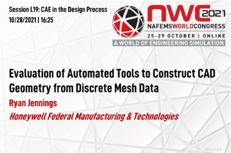 The necessity of manually converting discrete geometry to computer-aided design (CAD) is one of the challenges preventing the adoption of generative design and additive manufacturing. The output data type of most topology optimization software programs is a triangular surface mesh tessellation, typically in the stereolithography (STL) file format. However, for various product lifecycle management (PLM) activities, a smooth boundary representation that can be modeled in traditional CAD software is often preferred or required. Manually creating a CAD model from this discrete triangular surface mesh data requires hours of tedious labor for each part and introduces uncertainty and error into the workflow. There are also other areas outside of topology optimization and additive manufacturing where this model workflow is a problem. One is as-built-to-analysis workflows such as sequential process modeling, where inter-process impacts (e.g. forging impacts on machined part warping) require a multi-step simulation process, often transitioning between different software programs. Another is reverse engineering, or creating a CAD geometry from inspection scan data. All of these are long-term necessities for implementation and adoption of a model based enterprise and digital twin, and their associated efficiency and efficacy gains. Industry has responded to this demand with the creation of various tools to improve the level of automation in reconstructing CAD geometry from discrete triangular surface mesh tessellation data. In this study, several benchmark tessellations were created, either via optimization, sequential process modeling, or inspection scanning. Multiple software tools were then used to reconstruct CAD geometry from the discrete data of the benchmark tessellations. Speed and difficulty of the process were assessed, along with comparing both the geometrical accuracy and functional performance differences between the original tessellated design and the reconstructed CAD geometry. The Department of Energy’s Kansas City National Security Campus is operated and managed by Honeywell Federal Manufacturing & Technologies, LLC under contract number DE-NA0002839.