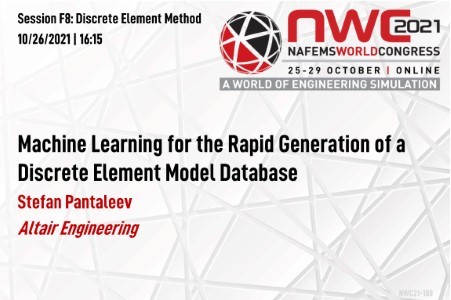 Particulate materials are ubiquitous in nature (soils, ores, grains) and constitute a large portion of industrial feedstock (chemicals, plastics, pharmaceuticals). The Discrete Element Method (DEM), in which individual particles and their interactions are modelled, is a high-fidelity approach for modelling particulate materials in a wide range of applications in the mining[1,2], metallurgy[3], agriculture[4], additive manufacturing [5], batteries [6], pharmaceuticals [7], chemicals [8] and defence industries [9]. Producing fit for purpose DEM models requires the determination of appropriate values for the micro-mechanical parameters that describe particle interactions. The physical measurement of these parameters is challenging, and an indirect method of determination, whereby the model parameters are optimised to reproduce a bulk measurement such as the angle of repose of a granular pile, is commonly adopted [10]. This model optimisation process can be time consuming, resource intensive and may require DEM modelling expertise. Material model databases can significantly minimise these requirements and therefore have considerable utility. However, their generation using traditional methods is expensive and time consuming. In this work, machine learning methods are investigated as a means of significantly improving the efficiency of generation of a DEM material model database. Artificial Neural Network (ANN) based methods and regression-based methods are evaluated and compared in terms of their accuracy for predicting the commonly used static angle of repose and bulk density calibration responses. A dataset of thousands of material models in the commercial DEM code EDEM is used for this purpose. It is found that machine learning methods have good predictive accuracy for the angle of repose and bulk density responses and a systematic approach for the rapid generation of a material model database using these methods is proposed. [1] Gröger, T., & Katterfeld, A. (2007). Application of the discrete element method in materials handling. Bulk Solids Handling, 27(1), 17–22. [2] Rodriguez, V. A., de Carvalho, R. M., & Tavares, L. M. (2018). Insights into advanced ball mill modelling through discrete element simulations. Minerals Engineering, 127(May), 48–60. [3] Mio, H., Kadowaki, M., Matsuzaki, S., & Kunitomo, K. (2012). Development of particle flow simulator in charging process of blast furnace by discrete element method. Minerals Engineering, 33, 27–33. [4] Horabik, J., & Molenda, M. (2016). Parameters and contact models for DEM simulations of agricultural granular materials: A review. Biosystems Engineering, 147, 206–225. [5] Fouda, Y. M., & Bayly, A. E. (2020). A DEM study of powder spreading in additive layer manufacturing. Granular Matter, 22(1) [6] Schreiner, D., Klinger, A., & Reinhart, G. (2020). Modeling of the calendering process for lithium-ion batteries with DEM simulation. Procedia CIRP, 93, 149–155. https://doi.org/10.1016/j.procir.2020.05.158 [7] Yeom, S. Bin, Ha, E., Kim, M., Jeong, S. H., Hwang, S. J., & Choi, D. H. (2019). Application of the discrete element method for manufacturing process simulation in the pharmaceutical industry. Pharmaceutics, 11(8). [8] Guo, Y., & Curtis, J. S. (2015). Discrete element method simulations for complex granular flows. Annual Review of Fluid Mechanics, 47, 21–46. [9] Wasfy, T. M., Mechergui, D., & Jayakumar, P. (2019). Understanding the Effects of a Discrete Element Soil Model’s Parameters on Ground Vehicle Mobility. Journal of Computational and Nonlinear Dynamics, 14(7). https://doi.org/10.1115/1.4043084 [10] Coetzee, C. J. (2017). Review: Calibration of the discrete element method. Powder Technology, 310, 104–142. https://doi.org/10.1016/j.powtec.2017.01.015