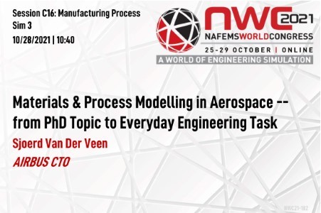 Modelling of materials and manufacturing processes (Integrated Computational Materials Engineering, Virtual Manufacturing, …) has been a subject of development for decades. Some sub-fields, such as metal forming, or plastic injection moulding, have become very mature. Thousands of companies of all sizes use those to their advantage, every day. The field is broad, however, and many sub-fields are still the area of research, for example additive manufacturing, or the forming of large and thick non-crimp fabric blankets. A modern airframe is made of dozens of materials, using hundreds of qualified manufacturing processes. This breadth and complexity has made industrialisation of materials- and process modelling difficult in aerospace. Things are changing, however, driven by the need for increased efficiency, the arrival of new engineers for whom simulation is second nature, and the increasing robustness and user-friendliness of integrated software suites. Airbus is turning the challenges provided by the current crisis into an opportunity to better prepare the future, by making major investments in digitalisation and sustainability. Physics-based materials- and process modelling is being made integral part of the design- and manufacturing preparation phases, to speed up those phases and reduce any risk of errors. We give examples of the latest advances both in modelling methods and tools, and in re-organising the airframe development process for faster, model-based design space exploration. Modern airframes make widespread use of large integrally machined metal parts. Machining distortion has long been an issue in this sub-field. Today, finite element-based machining distortion prediction is used systematically to improve machining strategies in the plants. However, the use of this simulation technology does not end there: it is also being introduced in part design phases. This way, designers can trade part performance against potential risks of not meeting the required tolerances, and mitigate these risks already in the design. Large carbon fibre reinforced thermoset composite parts also make up major portions of the airframe. Curing distortion is an inevitable challenge in this sub-field. Finite element-based simulation of the physics of curing today allows to compensate moulds right first-time. But material- and process modelling even finds applications in the design of these parts, as designers are starting to use it to optimise lay-ups simultaneously for performance as well as manufacturing. Airframe assembly, finally, has until recently been organised for small-series manufacturing. Production rates have grown however, and an industrial revolution is underway that will transform this sub-field to much more resemble the assembly of mass-produced products. Manufacturing process simulation is being used to design the future production system, but also to apply Design-for-Assembly principles to future product designs.