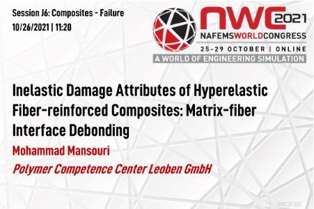 It is apparent from the literature that the matrix-fiber mechanical interaction, as a result of adhesive bonds at interface, has a significant contribution to the constitutive modeling of hyperelastic fiber-reinforced materials. The present study represents an initial attempt to model matrix-fiber interface debonding in the context of pseudo-elasticity and, moreover, to characterize and computationally evaluate it. For this, inelastic phenomena such as discontinuous Mullins-type softening and permanent set as a result of the matrix damage, the fiber rupture, and the matrix-fiber interface debonding are modeled. The pseudo-elastic model is based on hyperelastic strain energy functions with two damage variables for each of the matrix, the fibers, and the matrix-fiber mechanical interactions. Each of the material and damage parameters are characterized independently through performing a comprehensive set of monotonic loading and cyclic tensile tests, respectively. The results of the cyclic tensile tests on the pure matrix, fibers, and composites imply that the underlying mechanism producing the Mullins-type softening and permanent deformations can be attributed to the matrix-fiber interface debonding neither matrix nor fibers. It is supported by the matrix-fiber interface debonding observed using the micrographs captured during in situ tensile tests and is reflected in the residual deformations recorded through the stretch maps via digital image correlation after unloading. The in situ optical micrographs are indicative of two different microstructural evolutions: A continuous matrix-fiber debonding along the fibers, which is barely visible after unloading; and a discontinuous, pointwise matrix-fiber debonding, starting from the top vicinity of the fibers and continued to the matrix. Furthermore, an FE-implementation using a user-defined subroutine is presented and compared against experimental data. The results show that the model is capable of reproducing the inelastic behaviors as a result of the matrix-fiber debonding for composites showing significant degradation in their mechanical properties. This work bridges the degradation of the mechanical properties to the microscopically visible matrix-fiber interface debonding for composites undergoing cyclic deformations.