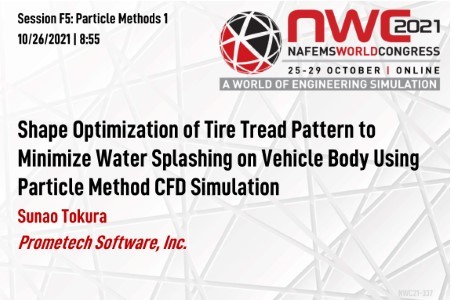 With the electrification of power, the enhancement of safety equipment, and the sophistication of automatic driving systems, many electrical components such as sensors, radars, and cameras have been installed in automobiles in recent years. It is necessary to take waterproof measures for these electrical components and to take measures to prevent wetness by water as much as possible. For underbody, which requires strength, anti-corrosion coating measures are required to prevent damage caused by water exposure containing chemical substances such as anti-freezing agents. Therefore, the manufacturing cost for the protection from water splashing is not so small. One of the ways to reduce the cost of the damage countermeasures is to reduce the amount of water that hits the lower part of the vehicle body. For this purpose, it is considered that the reduction of the water splashing caused by the tires is effective. In this paper, we applied a shape optimization method based on numerical simulation and tried to minimize the amount of water being splashed on the underbody by optimizing the tread pattern shape of the tire. In simulating such problems, it is necessary to model the water splashing caused by tire rotation from the road surface to the vehicle body surface. As a numerical computation method that can efficiently track the separation, collision, and coalescence of many water droplets in a wide space, the computation method based on the particle method is considered more suitable than the mesh-based conventional CFD computation. Besides, using the mesh-free particle method has the advantage that the remeshing does not be required when changing the shape of the flow path. Therefore, in this paper, we adopted Particleworks, a CFD software that uses MPS (Moving Particle Simulation), which is one of the major particle methods, for numerical simulation. In addition, CAD-based parametric shape optimization software CAESES was used to optimize the shape of complex tread patterns, and by efficiently repeating the optimization computation cycle, the optimum shape could be obtained in a short time.