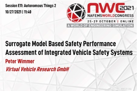 The future of vehicle safety will bring a fusion of active and passive safety into integrated safety to further reduce the number of injuries in road traffic. This development requires a closer interaction of different simulation domains that are nowadays separated. Therefore, new methods and processes must be established so that integrated safety systems can be developed and assessed accordingly. These methods and processes must cover relevant aspects from normal driving to crash, e.g. driving dynamics, sensors, active-safety algorithms, vehicle structure deformations, restraint systems, and occupant behaviour. Apart from the need to combine all these different simulation domains, this development poses an additional challenge to passive safety system evaluation: A scenario-based assessment consisting of a large number of simulation runs instead of evaluating a limited number of test cases. Classical finite element crash simulations require considerable simulation effort to deliver precise results and are therefore not suited for such types of large-scale analysis. Consequently, new, time-efficient methods need to be developed , which significantly reduce calculation time while still providing acceptable result prediction quality. As a possible solution addressing this challenge, mathematical and physical surrogate models for all time-consuming simulation steps are presented in this paper, enabling a time-efficient safety performance assessment of combined active and passive safety systems. As a proof-of-concept of the method, an assessment of two integrated safety system variants consisting of an autonomous braking (AEB) system and a standard restraint system is presented. The potential of the integrated safety system to reduce occupant injury risk is shown using 285 virtually generated accidents, resulting in a total number of 285*3=855 simulation runs (285 runs for the baseline plus 285 runs for each integrated safety system variant). As an additional benefit, the developed fast-calculating surrogate models’ usage also allows for a case-specific optimisation of the restraint system. By that, the potential for reducing the occupant injury risk can be increased even more.