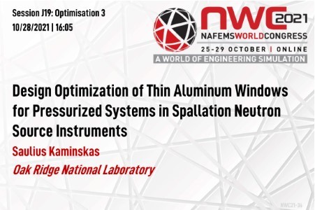 The abundance of scientific experiments is available with Instruments of Spallation Neutron Source (SNS) at Oak Ridge National Laboratory in Tennessee. Each Instrument generally represents a set of engineering components, lined-up to pass the neutron beam through them until it finally reaches detector. Many of such components have vacuum inside and input/output aluminum windows which must be thin enough to not obstruct the neutron beam passing through. The thin windows, on the other hand, must reliably hold the atmospheric pressure from outside not compromising the safety of instrument operation. Insufficient strength and durability of the window may cause its rupture with necessary instrument shut down for costly repairs. Two major types of windows were analyzed and optimized: clamped plane aluminum sheet and machined window with fillet. To keep the stresses below safety margin at plane sheet window, the design concepts of “prestressed” and “supported” window were developed. Design of Experiment (DOE) was performed to create the response surfaces for different window design types using Isight and Abaqus software. Parametric optimization was performed next assuming that the higher stress and fatigue allowable margins will contribute to the higher robustness and reliability. To ensure that safety requirements are met, the additional plastic and fatigue analyses were completed with Abaqus and ASME recognized advanced Fe-Safe (structural fatigue) software. Results also were validated by comparing them with results for two other windows from instruments at different neutron beamlines. Performed analyses were also repeated for comprehensiveness by using solid, shell, axisymmetric shell, and membrane types of finite elements. Obtained results enabled to identify the optimal window and clamp assembly design or the possible trade-offs for the most feasible design if needed. The specifics of applied technology together with the most characteristic results will be presented. *The SNS is sponsored by the Office of Science, US Department of Energy, and managed by UT-Battelle, LLC