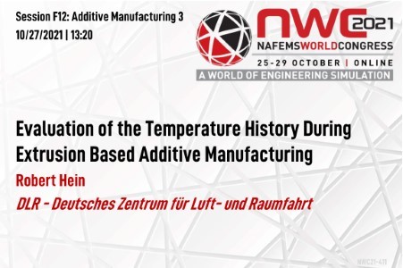 Additive manufacturing (AM) is considered as a key technology for the efficient production of individualized components. The technique enables the tool-less production of complex geometries and designs that could not be realized cost-effectively with conventional manufacturing methods. The focus of the presentation is on the Fused Filament Fabrication (FFF), where a thermoplastic filament is extruded trough a nozzle. The material is deposited layer by layer until the final part is build. Thereby, high temperature gradients occur within the part when the hot material is deposited on the lower layers. During the printing process the lower layers are reheated several times so that the material properties are influenced even after the deposition has been made. The thermal history has major effects on crucial material properties such as the degree of crystallization or viscosity. An insufficient viscosity can lead to a weak bonding and reduced strengths between adjacent layers. An inadequate degree of crystallization influences both the structural properties such as the stiffness or the degree of bonding but also the dimensional accuracy due to subsequent shrinkage effects. Additionally, the temperature gradients cause residual stresses which are partly relaxed to varying part deformations. The remaining stresses can lead to premature failures. To achieve a high and repeatable part quality as well as a low scatter in the final part dimension an in-depth process understanding is required considering the underlying material-process-part-interactions. In order to analyze these complex multiphysics processes, manufacturing process simulations are suitable method. A main requirement for the numerical analysis of AM processes is the calculation of the thermal history as accurately as possible. The objective of this work is, therefore, to evaluate the prediction accuracy of currently available AM process simulation tools. For this purpose, an AM process simulation of a cuboid is performed using the Abaqus AM plug-in. The cuboid made of PETG is printed with a Prusa i3 MK3. In order to monitor the temperature history during the printing process very thin thermocouples (0.25mm) are integrated in the center and distributed over the part thickness. The machine code (gcode) is transferred to Abaqus and the transient temperature fields are predicted in dependency on the thermal boundary conditions. The predicted temperatures are compared to the measurements and the prediction accuracy is evaluated.