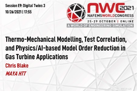 In order to remain competitive, gas turbine OEMs must ensure high availability of their products. In addition to designing for product performance and product quality, OEMs provide long-term maintenance plans to their customers to keep their engines working smoothly. Such maintenance plans are made possible by the monitoring and advanced analytics of telemetry data coming from engine assets. For example, detection of problematic operating conditions and prediction of future part failures needing maintenance or overhaul requires collection of data and analytical or machine learning models to process that data. However, implementing and deploying such real-time models necessitates upstream simulation tools. The goal of this paper is to present 3D simulation technology that enables these predictive-maintenance use cases. We will discuss: a) Thermo-mechanical simulation of gas turbines. Here, Siemens Simcenter 3D Thermal-Multiphysics is used to build a complete representation of the whole engine through the use of thousands of separate boundary conditions that adequately represent the transient behavior of the whole engine. Those boundary conditions represent the flow conditions, in various regimes, for a range of rotational speeds and in different sections of the engine. They make use of built-in thermal correlations, of “expressions” that can automatically access specific model data (e.g., fluid temperature, material properties, solve-time computed results, rotational speed or radius), or of proprietary correlations obtained from in-house measurements, experience or CFD. b) Correlation of simulation data to test data. Here, we will discuss a novel adjoint-based sensitivity approach to rapidly compute sensitivities to many design parameters, such as heat-transfer coefficients, and heat-pickup rates, and utilize those sensitivities to rapidly correlate and update a transient thermal-mechanical model to temperature measurements. c) Model-order reduction. Here, we will discuss physics-based (intrusive) and AI-based (non-intrusive) methods to extract lower-dimensional approximations of the whole engine thermo-mechanical model that run in near-real time. The impact of model non-linearities will be emphasized. These reduced-order models can be deployed within edge devices or in the cloud to act as “virtual sensors” or “digital twins” that augment measured telemetry data. Development and deployment of these analytics tools involves several technology bricks and the exchange of large amounts of real-time data between them. As such, we will briefly touch upon the requirements for an industrial data pipeline to facilitate the connection between these bricks. We will demonstrate these topics by means of a real gas-turbine engine model.