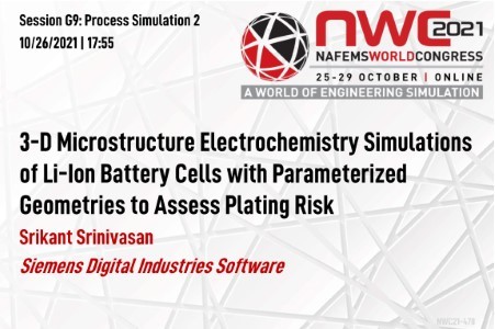 Lithium plating is detrimental to battery operation from efficiency, ageing and safety perspectives. Lithium deposition at the anode Solid Electrolyte Interface (SEI) is known to occur when the local potential in the anode approaches 0V, and is commonly encountered during Direct Current Fast Charge (DCFC) scenarios at large Charge Rates. Recent studies have suggested a correlation between tortuosity of the porous electrode and plating risk. Since electrolyte tortuosity is determined by Active Material (AM) particle geometry and packing, optimal AM particle statistics are important for cell design from an Electrochemical performance perspective. Further, for a class of electrodes such as the graphite-based anode investigated here, Li intercalation swelling induces stresses due to mechanical constraints imposed by the cell-casing. Consequentially, performance degradation occurs over several charge/discharge cycles due to mechanical fatigue. Crucial to this context, particle shape and stress distribution are linked via current density distribution. Specifically, localization of current density due to local particle geometry and connectivity can result in stress-strain localization due to local Li intercalation behavior. Therefore, an investigation that involves both the electrochemical and mechanical aspects can better guide the microstructural cell design process. Towards this end, we investigate microstructural unit-cell geometry using STAR-CCM+. Key features of our solution approach include: 1. Microstructural Electrochemistry (MSE) simulations providing transient electro-chemical solution including Lithium/Lithium salt concentration throughout the domain. Plating risk can be identified with electric potential distribution. 2. Parameterized anode and cathode particle geometries to study different particle shape, orientation and connectivity statistics. 3. Using Finite Element Analysis (FEA) in STAR-CCM+ to predict mechanical deformation and stress solution based on local particle lithiation from the MSE solution. Simulations are carried out with a few parameterized geometries. The resulting FEA and MSE distributions then help to assess the tradeoffs involved in particle-shape optimization potentially leading towards an effective Multiphysics-based approach to plating mitigation.
