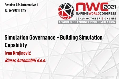 With ever increasing need to bring products to the market faster, at lower costs or with increased efficiency, need for virtual prototyping is rising in many companies and industries. Simulations Department in Rimac Automobili is also a product of a such need. Rimac Automobili is focused on design, engineering, and production of high-performance electric vehicle components for the global automotive industry. To be able to deliver such components, numerical simulations are extensively used. Simulations Department has been formed by combining experts for several other departments. From its early stages it has been crucial to deliver fast and accurate insights of different designs of electric vehicle powertrain and battery systems using different types of calculations. With growth of the Rimac Automobili as a company, Simulations department is expanding its capabilities, toolset, and the team to be ready for future challenges in the development of electric vehicles. Now, several years in existence, many valuable lessons, and general rules of how to build highly functional simulations team and how to develop new simulations capabilities have been learned. These lessons and rules will be presented and discussed in this presentation. There are several aspects of building simulations capability presented. One of the aspects covered in this presentation is people management and communication of both inside of the team and outside of the team. Several lessons learned from interviewing process to the communication of the results will be presented. In parallel with the building of the team, it is necessary to expand simulations software and hardware capabilities. Discussions between selections of open source versus commercial software and local hardware versus cloud computing will also be presented. Other aspect that is discussed is experimental validation of simulations’ results. Experimental validation is crucial and inseparable part of simulations process needed to increase accuracy of the results and selections of the right modeling strategies. General guidelines how to perform experimental validation will be shown. Final aspect of building simulations capabilities is simulations data management. Process from initiating simulations request to data storing will be shown and discussed. Presented lessons and rules will be shown together with real life examples from projects that Simulations Department has been working on with special focus on Rimac Automobili’s all electric hypercar Nevera.