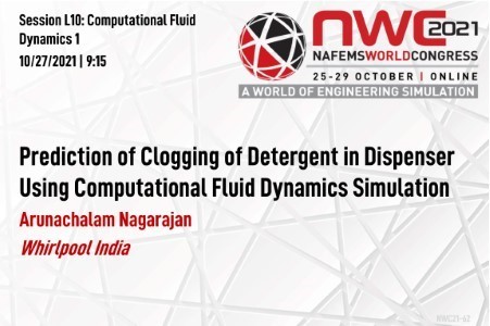 The washing machine has become an integral part of our urban daily life. We have a vertical Axis washing machine (VA) and a Horizontal axis washing machine (HA) that are popular among the large portion of the customer using the washing machine. Year on year the expectation of the customers are raising in terms of the water usage and energy rating for running these machines. So it becomes of utmost importance to have a very efficient machine to wash our clothes with very less water as much as possible. While the machine cleans our clothes efficiently with the right amount of detergent, detergent dispensing in washing machines is a very critical step to determine the wash quality of the clothes. In today’s scenario, we have powder and liquid detergent used by everyone for washing the clothes in the washing machine. The amount of detergent getting dissolved with the water becomes more critical. The improper mixtures result in detergent residual in the dispenser and affecting the wash performance of the machine. This project aims to predict early in the design cycle, the performance of the complete dispenser assembly which includes powder/liquid detergent, softener, and bleach compartment by monitoring water flow using Computational Fluid Dynamics (CFD) methodology. In this paper, water flow distribution is studied for Softener and detergent chambers. Using the Euler-Euler approach with Volume of Fluid (VOF) method in Commercially available Ansys Fluent solver. This assessment shows the simulation prediction has a good correlation with the physical test results for the Softener chamber which extended for the detergent chamber also. Leveraging this prediction at an early stage of the design will help us to prevent detergent clogging in the detergent chamber and provide an optimized design of the dispenser. The study encompasses developing a guideline for the simulation by identifying the optimum design requirements for the nozzle location/shape for the detergent chamber to avoid clogging of the detergents in the dispenser and the amount of water flow required without splashing in the dispenser drawer which will not show in leakage of water. Simulation is useful to monitor critical zones prone to clogging/residual of detergent in the dispenser. Design optimization is based on water coverage and impinging velocity.