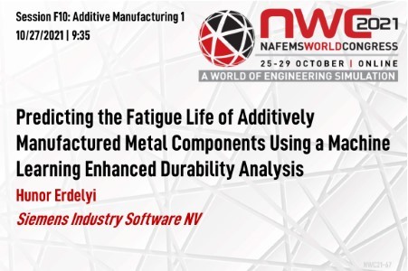Metal laser powder bed fusion (LPBF) is an additive manufacturing (AM) technology applicable for manufacturing of structurally loaded components. As with many industrial applications, ensuring the safe use of the 3D printed component during service life is a strong requirement. As such, durability analysis is performed to calculate the fatigue life for the given load conditions and to validate the design. However, conventional durability analysis does not consider the local material properties and defects resulting from the AM process and as such cannot predict accurately the fatigue performance of the 3D printed part. With LPBF the component is built layer by layer, having a laser scan and weld the metal bead by bead. This process leads to varying local material properties resulting from the AM induced local conditions like microstructure, porosity content and surface roughness. To predict accurately the fatigue life of a 3D printed metal component one needs to characterize the impact of the above-mentioned local conditions on the fatigue property of the material and to efficiently consider these local fatigue properties in the part scale durability calculation. This poses a rather significant challenge as there are endless combinations of local conditions and post treatments (for example surface and heat treatments). Performing a solely test based characterization would lead to a very large and very expensive test campaign. The solution to this problem proposed by the authors relies on a Machine Learning based material model able to predict the effect of any combination of AM induced local condition on the fatigue property of the material. Combined with an enhanced durability solver the solution can efficiently consider the AM induced local properties on the part scale and provide a more accurate fatigue analysis. The authors acknowledge SIM and VLAIO (Flanders, Belgium) for funding the “M3-FATAM” (HBC.2016.0446) project (M3 research program).