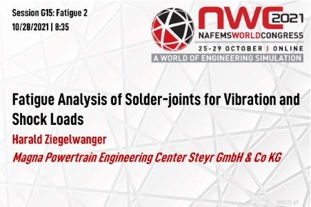 The trend towards electrification of the powertrain requires the development of electronic components that can withstand various types of mechanical loads, e.g., harmonic and stochastic vibrations or mechanical shocks. In the automotive sector, electronic components must be tested according to the mechanical requirements of relevant standards, e.g., to the VW80000. A major challenge in this context is the fatigue strength of solder joints, for which these loads are usually considered to be an undesirable condition. In this talk, a comprehensive simulation process for assessing the fatigue strength of solder joints is presented. In a nutshell, first, a modal-based frequency response analysis is performed for the finite element model (FE-model) of an electronic component containing a printed circuit board (PCB) equipped with substitute FE-models of surface mount devices (SMDs), in whose pins the nodal displacements are measured as a function of frequency. These nodal displacements of each single pin are then scaled by static analyses of a corresponding solder-joint sub-model to retrieve the solder-joint stresses and the solder-joint damage or safety factor is finally calculated in FEMFAT max, FEMFAT spectral, or FEMFAT break for harmonic, random, or shock loads, respectively. Since the number of SMDs on a single PCB can be very large and the simulation process requires substitute FE-models for each SMD and an individual solder-joint sub-model for each solder-joint footprint, it was essential to develop and implement algorithms, which build the substitute FE-models for the SMDs and sub-models for the solder joints automatically. Therefore, the proposed process consists of three core technologies: semi-automatic generation of substitute FE-models for SMDs, automatic placement of these substitute FE-models on FE-models of PCBs and automatic generation of solder-joint sub-models, for which the geometry is calculated based on pin dimensions of the SMD, the pad dimensions on the PCB, solder volume, surface tension and gravitation.