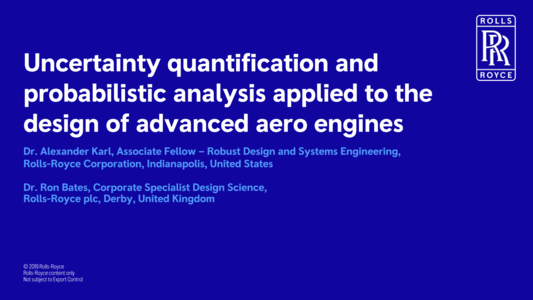 Accounting for variability and uncertainty that might occur during the manufacturing process and in the use of products is increasingly important for the assessment of component, sub-system and system performance. The application of simulation-driven design has enabled more widespread use of stochastic and probabilistic methods in the design of advanced aero engines, enabling the assessment of variability and uncertainty during their development. The early estimation of in-service aero engine behaviour allows for competitive design solutions, shortens development time and reduces development costs. The probabilistic models developed via these tools and methods can be updated with data collected during the in-service phase of the product. This can be used to verify and validate the estimated behaviour or to build a digital twin of the product and enhance any forward prediction of product behaviour.