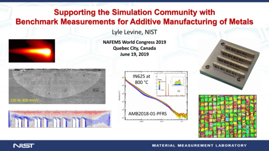 Additive manufacturing (AM) of metal components is a rapidly growing advanced manufacturing paradigm that promises unparalleled flexibility in the production of parts with complex geometries. However, the extreme processing conditions createposition-dependent microstructures, residual stresses, and properties that complicatecomponent and process certification. Quantitative modeling of these characteristics is critical, but model validation requires rigorous measurements including comprehensive insitu monitoring of the melt pool behavior, along with microstructure, residual stress, and property characterizations. To be useful, such benchmark measurements must be accepted broadly by the international AM community so that meaningful comparisons can be made. I will describe our establishment of the Additive Manufacturing Benchmark Test Series (AM-Bench), a continuing series of highly controlled benchmark tests for additive manufacturing that modelers around the world are now using to test their AM simulations.