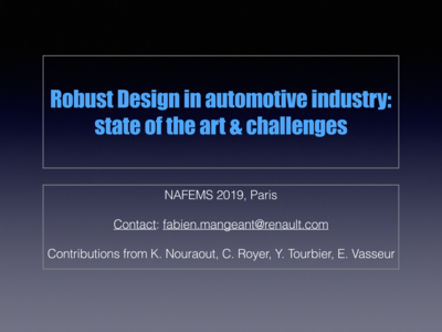This presentation was made at the NAFEMS France Seminar "Robust & reliable design by simulation"