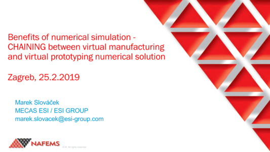 In most cases the results from numerical simulation of classical mechanic solution as static, dynamic, impact or limit state assessment as fatigue are not corresponding with reality. The differences at results are done in most cases as influence of material degradation during manufacturing processes as casting, forging, stamping and mainly welding. ESI GROUP is leading innovator in Virtual Manufacturing and Virtual prototyping chaining and offers chaining solution on one model it means that almost all numerical simulations can be done by using one computational model. The main aim of presentation is demonstrating possibility of chaining numerical simulation. There will be shown industrial numerical simulation chaining between stamping and welding and impact solution, also between spot welding and rupture solution and also between welding and external loading and fatigue analyses from transportation industrial sector. The all methodologies have been validated based on real experiments and by using measured and validated material properties, small mock-ups experiment and also on real industrial cases.