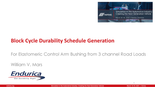 This presentation was made at the NAFEMS Americas Conference "Simulation in the Automotive Industry: Creating the Next Generation Vehicle" held on the 16-18 March 2021.