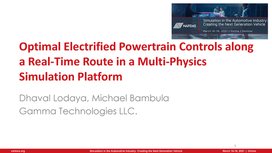 This presentation was made at the NAFEMS Americas Conference "Simulation in the Automotive Industry: Creating the Next Generation Vehicle" held on the 16-18 March 2021.