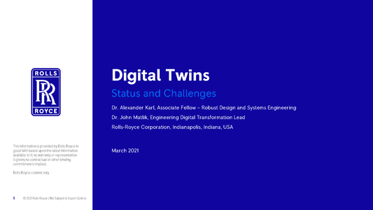 Digital Twins Status and Challenges