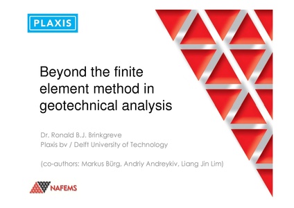 Presenation made by R. B. J. Brikgreve, M. Burg, A. Andreykiv and L. J. Lim at the NAFEMS Britain Seminar "Beyond FEA: An Introduction to Evolving Numerical Methods for Challenging Engineering Problems" that was held in Middlesex, UK on the 14th of May 2015.