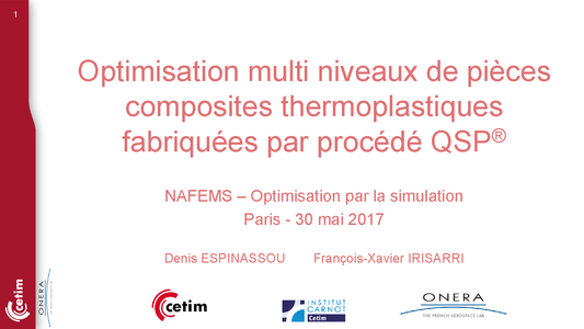 Optimisation multi niveaux de pièces en composites thermoplastiques (procédé QSP)