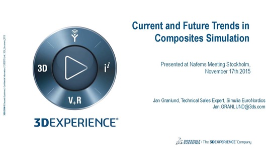 Presentation made by J. Granlund at the NAFEMS Sweden Seminar "Simulating Composite Materials and Structures" that was held in Stockholm, Sweden on the 17th of November 2015.