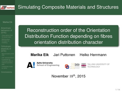 Presentation made by M. Eik, J. Puttonen and H. Herrmann at the NAFEMS Sweden Seminar "Simulating Composite Materials and Structures" that was held in Stockholm, Sweden on the 17th of November 2015.