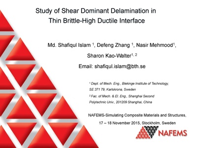 Presentation made by M. S. Islam, D. Zhang, N. Mehmood and S. Kao-Walter at the NAFEMS Sweden Seminar "Simulating Composite Materials and Structures" that was held in Stockholm, Sweden on the 17th of November 2015.