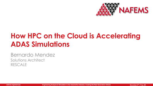 This presentation focuses on leveraging an advanced engineering model simulation of an ADAS workflow across multiple solvers with the HPC large scale parallelization capability on the cloud. We will discuss the challenges to overcome when deploying an ADAS workflow onto the cloud infrastructure, including user interface, networking, and data storage. We will also demonstrate the benefit of deploying ADAS workflow on the cloud through case studies and a live example.