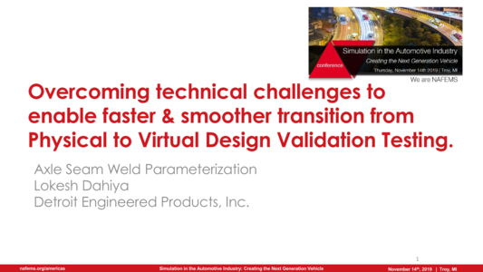 This presentation was made at the NAFEMS Americas "Creating the Next Generation Vehicle" held on the 14th of November in Troy.