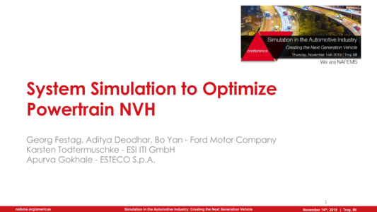 This presentation was made at the NAFEMS Americas "Creating the Next Generation Vehicle" held on the 14th of November in Troy.