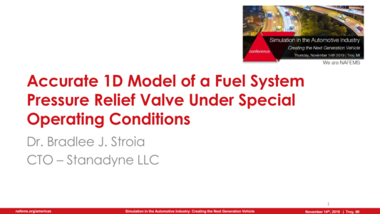 As part of validation testing of GDI fuel systems, several specific system tests are conducted. It is desirable to conduct these tests virtually with 1D system models prior to actually producing prototypes in order to speed up product development cycle times. This process is called Analysis Led Design. One of the most harsh system tests is the "Dead Head" test, where the maximum fuel pump delivery is modelled attached to a static volume called the fuel rail. This test is used to test the dynamic response of the pressure relief valve (PRV) of the fuel system.