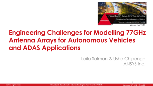 Engineering Challenges for Modelling 77GHz Antenna Arrays for Autonomous Vehicles and ADAS Applications
