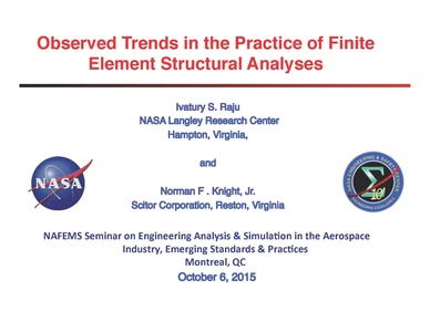 Presentation made by I. Raju and N. Knight at the NAFEMS Britain Seminar "A Guide to Hybrid RANS-LES Methods: Industrial Examples and Theory" that was held in Oxfordshire, UK on the 23th of September 2015.