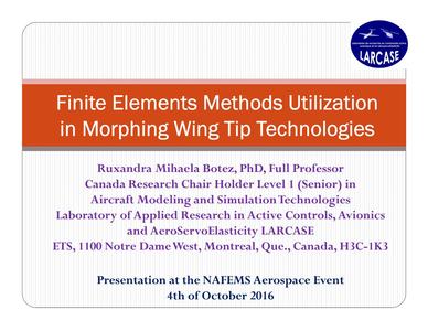 A recording of the presentation made by R. Botez at the NAFEMS Americas Seminar "Engineering Analysis & Simulation in the Aerospace Industry - Emerging Standards & Practices" that was held in Montreal on the 4th of October 2016.