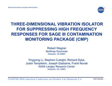 Three-Dimensional Vibration Isolator for Suppressing High- Frequency Responses for Sage III Contamination Monitoring Package (CMP) SpaceX Case Study