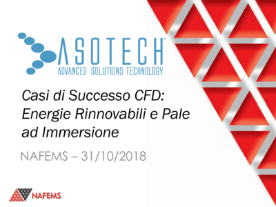 L’utilizzo di strumenti di fluidodinamica computazionale si sta rapidamente estendendo a diversi campi del mondo industriale. Asotech, società di ingegneria con oltre 100 dipendenti di Reggio Emilia attiva da oltre 20 anni, presenterà alcuni casi di successo. Oltre ai software CAD, Asotech dispone della suite ANSYS per le simulazioni FEM e CFD. La presentazione spazierà dagli impianti eolici di ultima generazione (caratterizzazione e ottimizzazione delle turbine) all’ottimizzazione di pale ad immersione per liquami per terminare con verifiche di impianti ad energia solare. Durante la presentazione, Asotech si concentrerà sui miglioramenti ottenuti con l’introduzione del CFD e sulla possibilità di integrare verifiche fluidodinamiche ed analisi strutturali FEM. Asotech ha lavorato su una nuova linea di miscelatori sommergibili orizzontali: l’attività svolta su diverse taglie di mixer ha ottimizzato i flussi e migliorato i rendimenti, in media, di oltre il 30%, aumentandone di conseguenza la spinta assiale. Proseguiremo con la descrizione delle attività svolte su diversi tipi di impianti eolici, con lo studio e l’ottimizzazione delle pale e la generazione di curve caratteristiche; l’utilizzo di software CFD che permette di ottenere dati del funzionamento degli impianti prima di realizzare i prototipi e di correggere eventuali errori di progettazione. Al temine della presentazione, saranno illustrati i risultati ottenuti accoppiando FEM e CFD su impianti solari a concentrazione di nuova generazione; l’attività ha permesso un incremento della velocità massima del vento e un minor utilizzo di materiale.