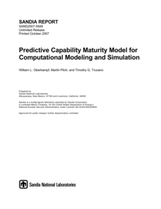 Predictive Capability Maturity Model for Computational Modeling and Simulation; Sandia Report SAND2007-5948