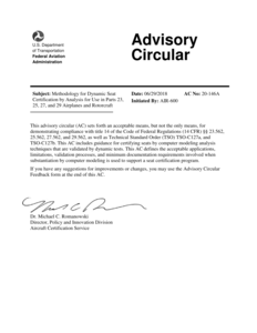 Advisory Circular 20-146A: Methodology for Dynamic Seat Certification by Analysis