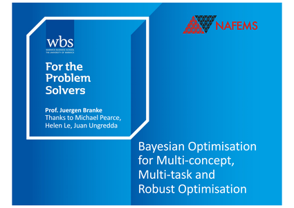 This event was hosted by the NAFEMS Optimisation Working Group (OWG). The OWG has formed an online Community to help disseminate best practice and encourage the adoption of optimisation methods and technology. For more information and to get involved go to the Optimisation Community webpage.