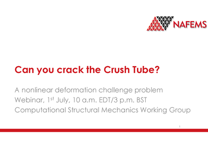 The Computational Structural Mechanics working group would like to present the NAFEMS community with a nonlinear deformation challenge problem. The problem is outlined in this freely downloadable presentation. We’d love to learn how you would tackle the problem and look forward to comparing approaches.